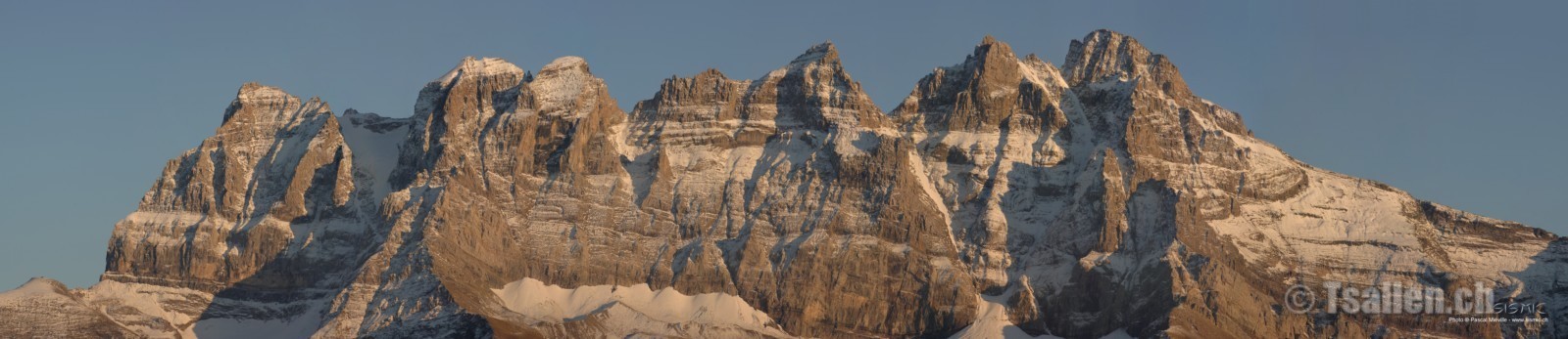 Photo Panoramique des Dents du Midi en hiver vers 01 (au couché de soleil)